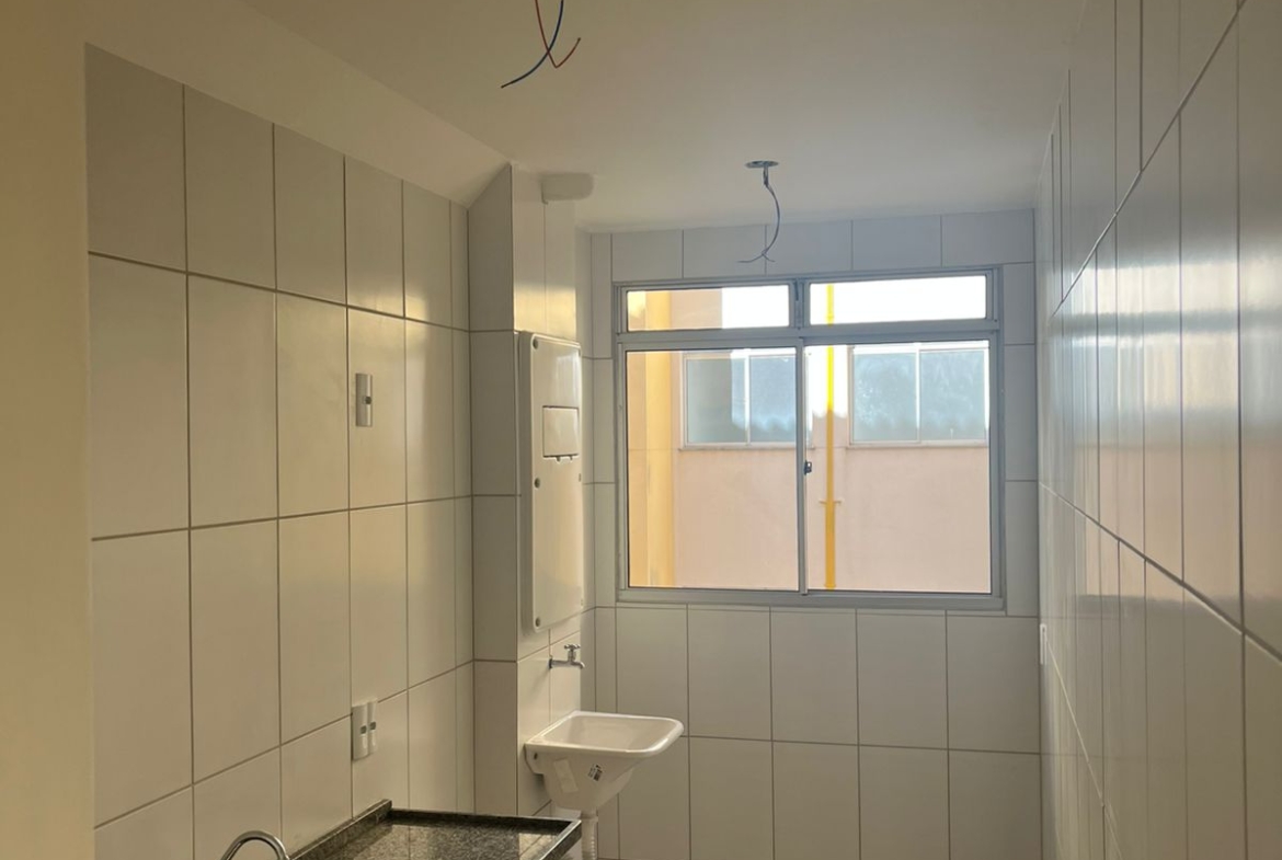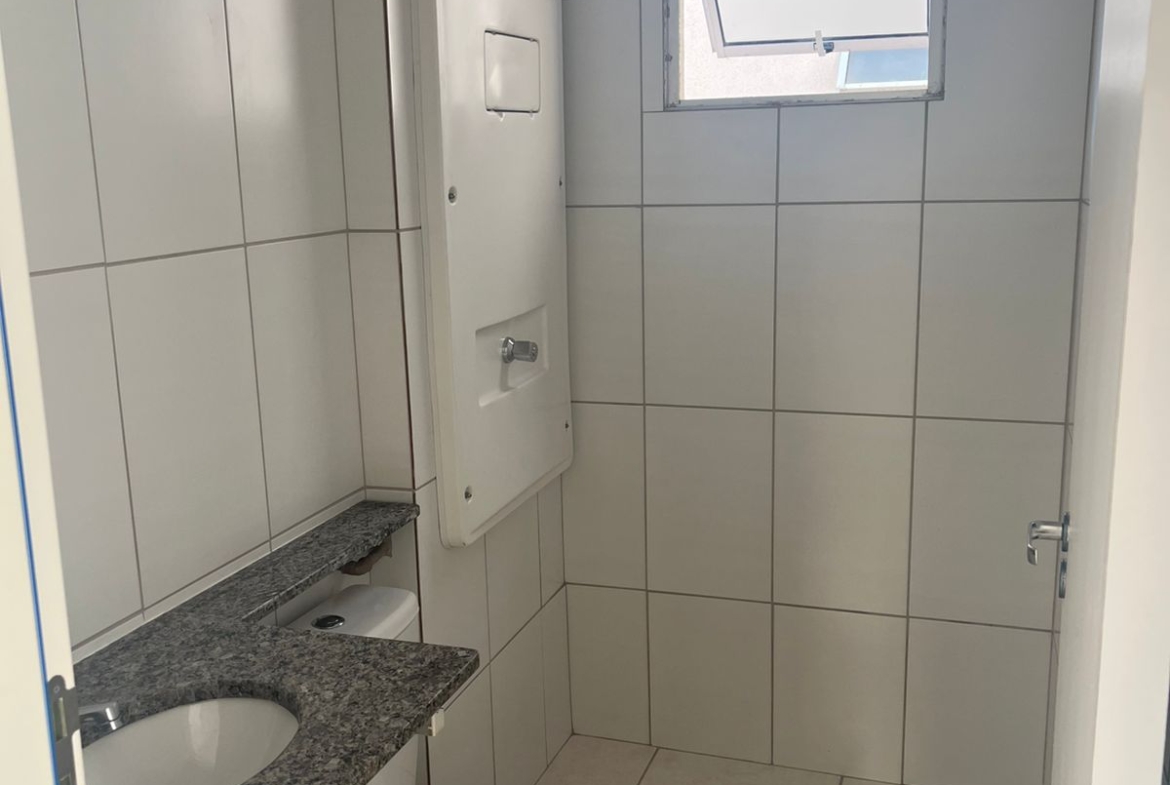 Apartamento com 2 quartos, sendo 1 suíte, sala, copa, cozinha com área de serviço, banheiro social e 1 vaga de garagem.