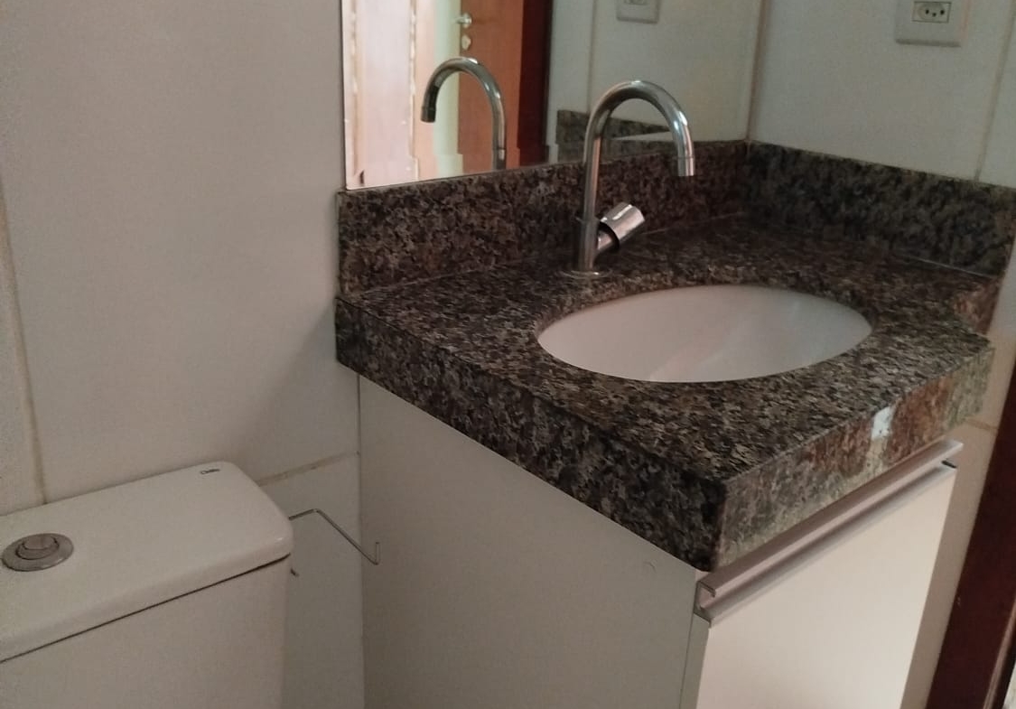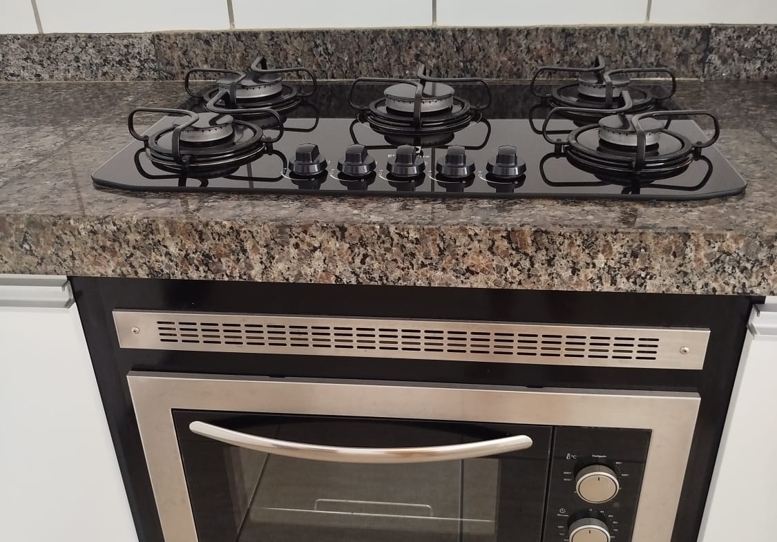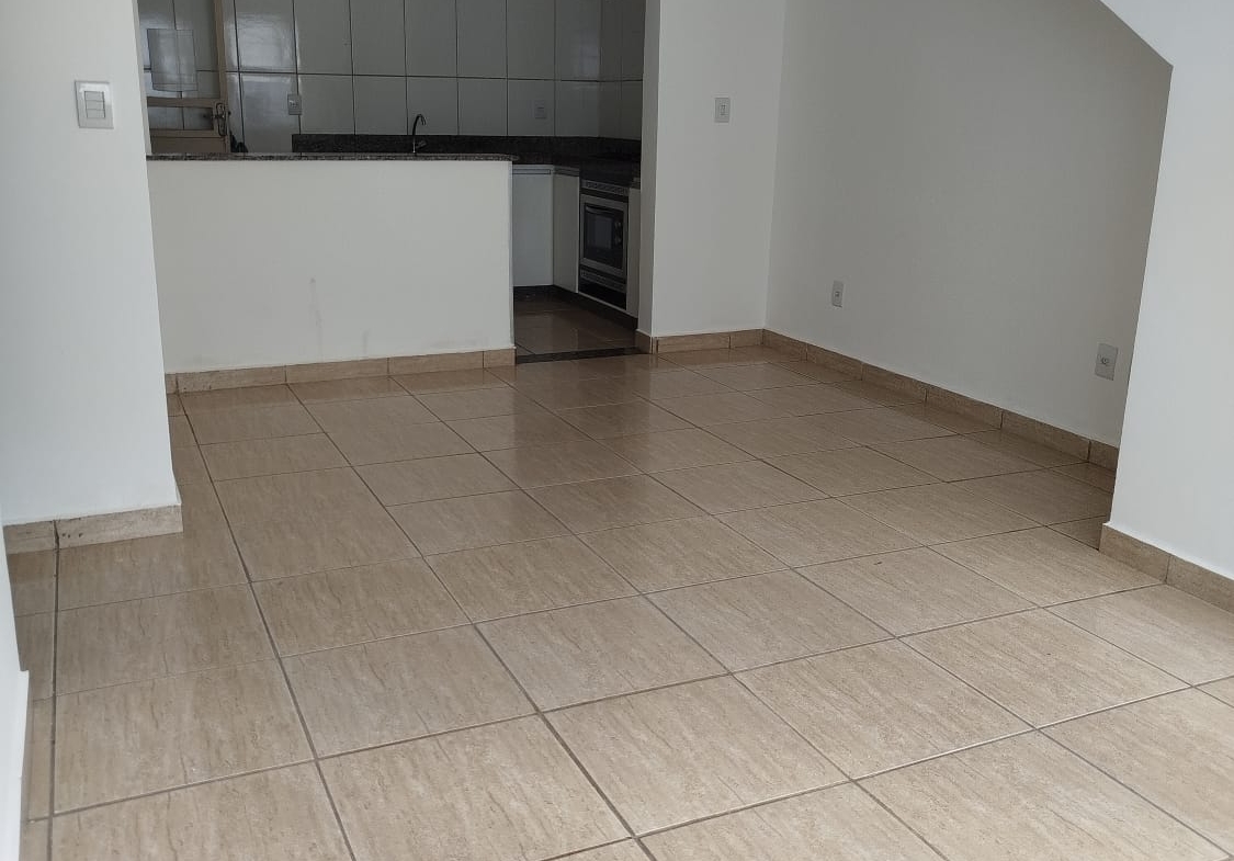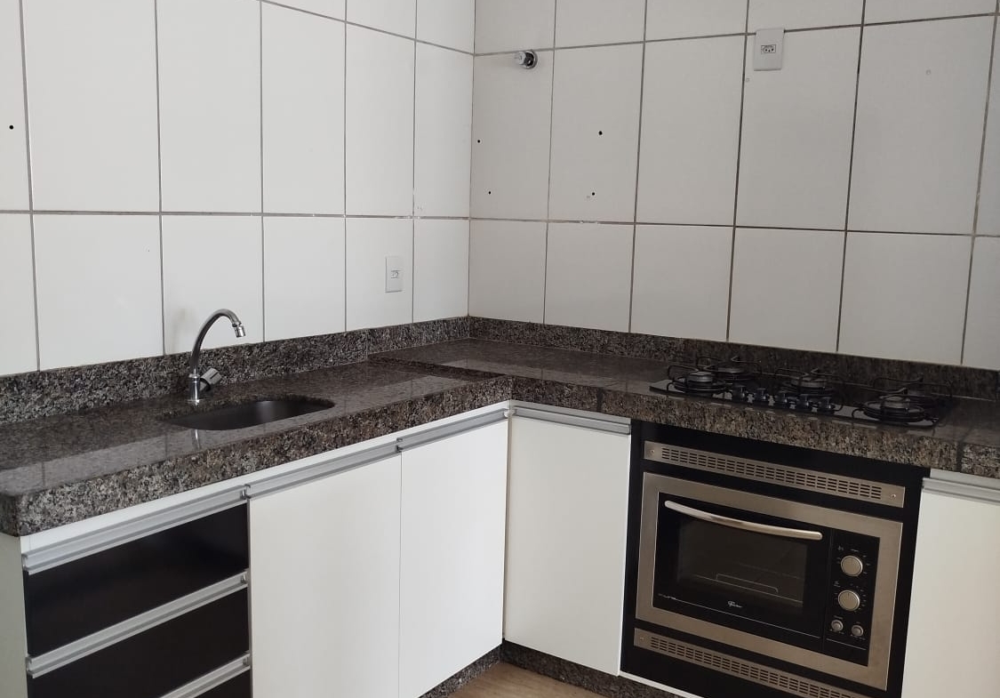 Apartamento com 2 quartos, sala e copa conjugados, banheiro social com box e armário abaixo da pia, cozinha com armário e fogão embutido, área de serviço, garagem coberta para um carro.
