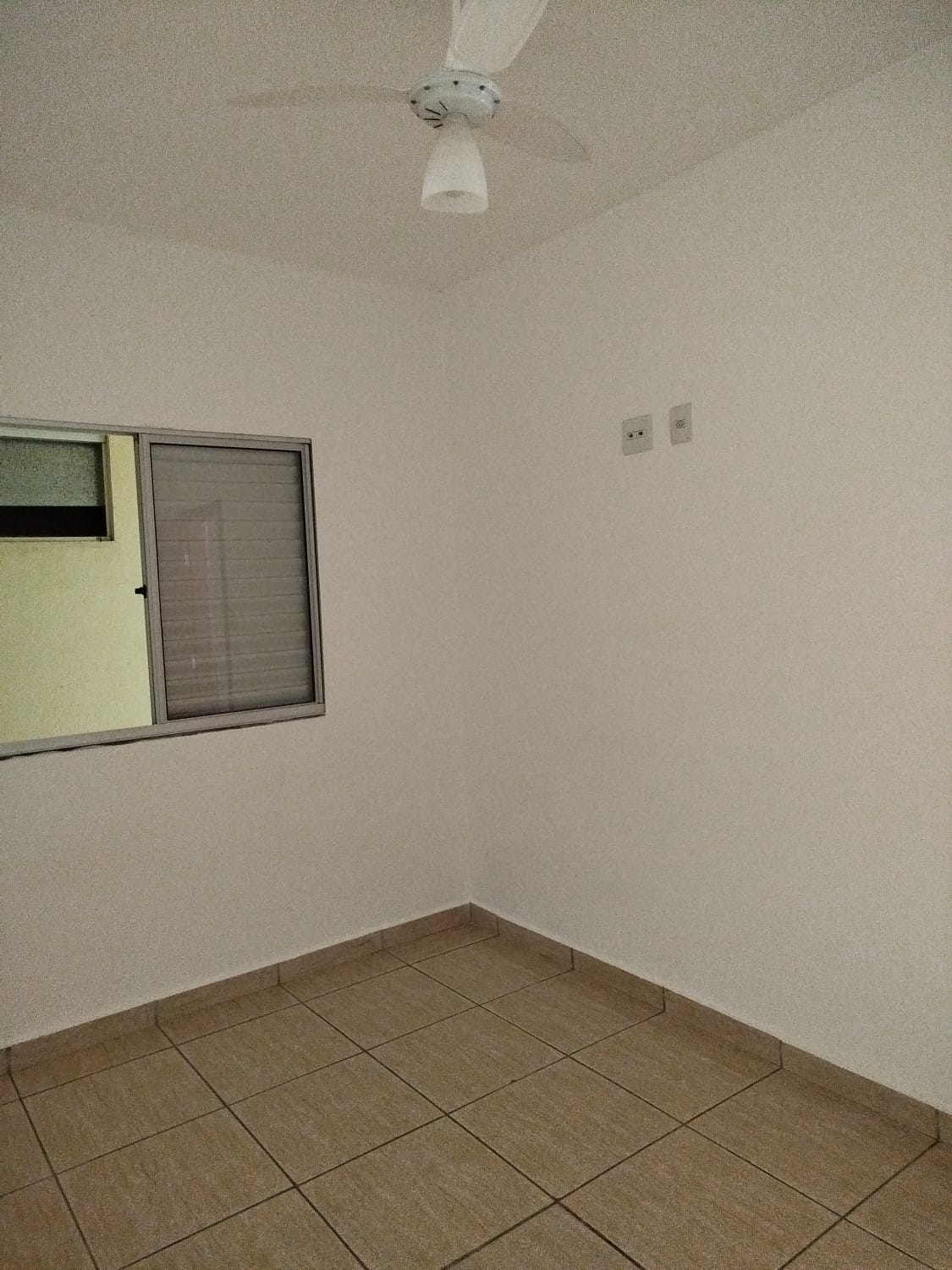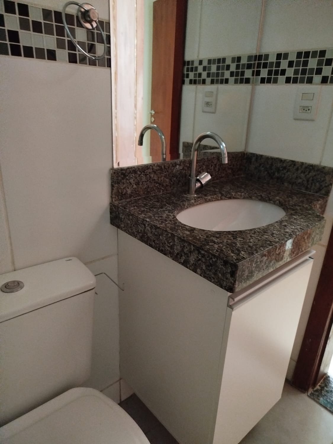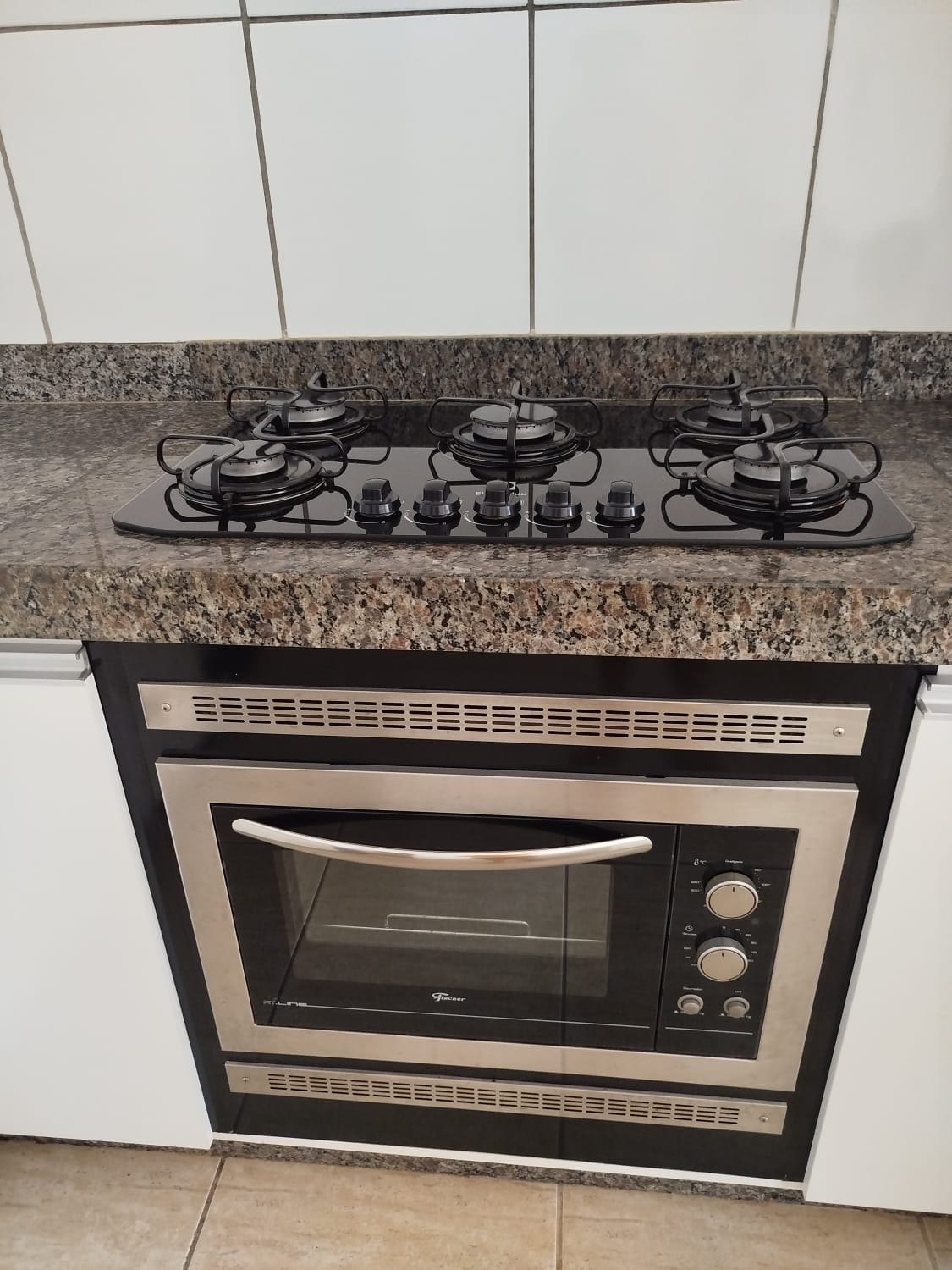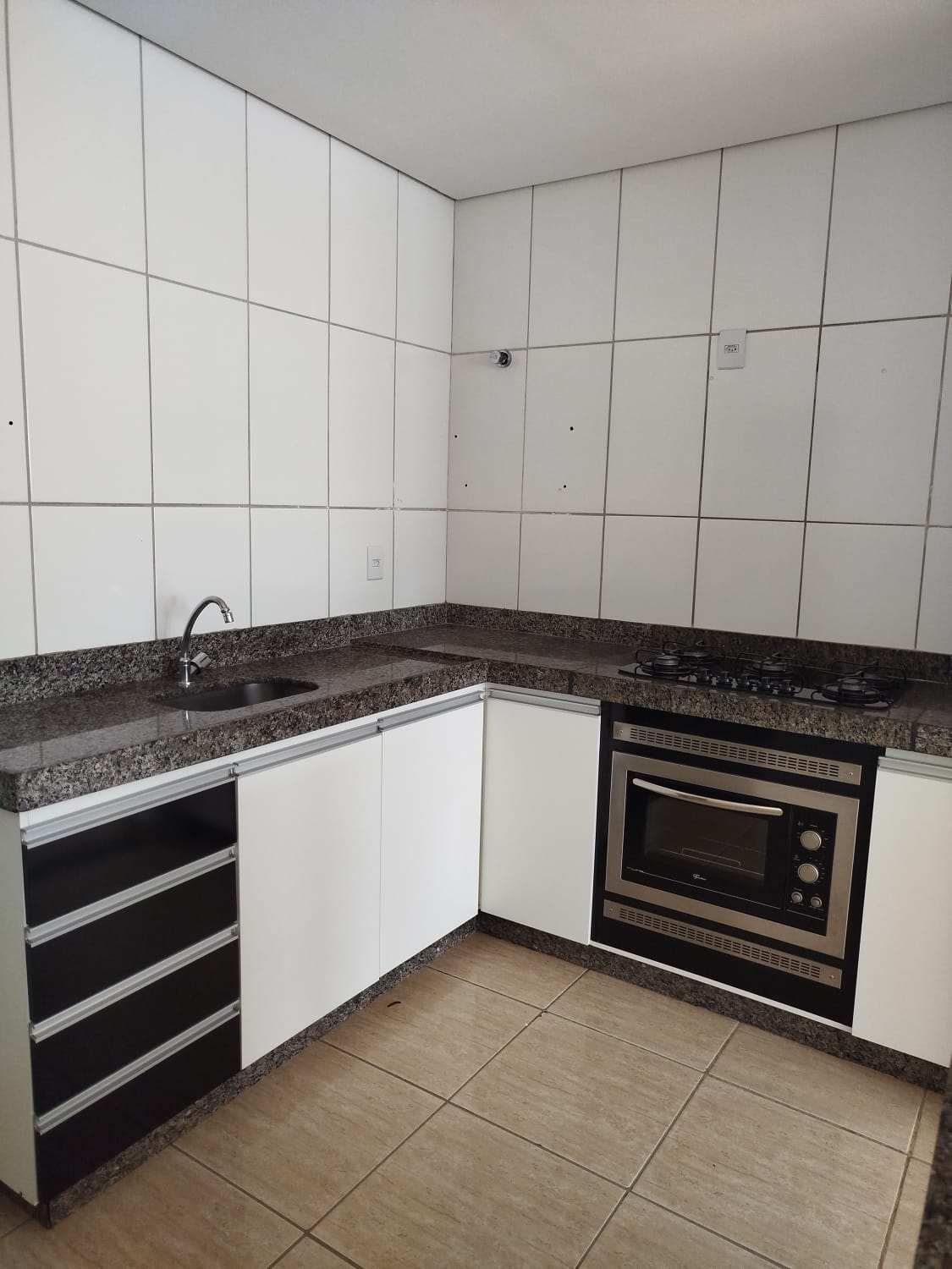 Apartamento com 2 quartos, sala e copa conjugados, banheiro social com box e armário abaixo da pia, cozinha com armário e fogão embutido, área de serviço, garagem coberta para um carro.