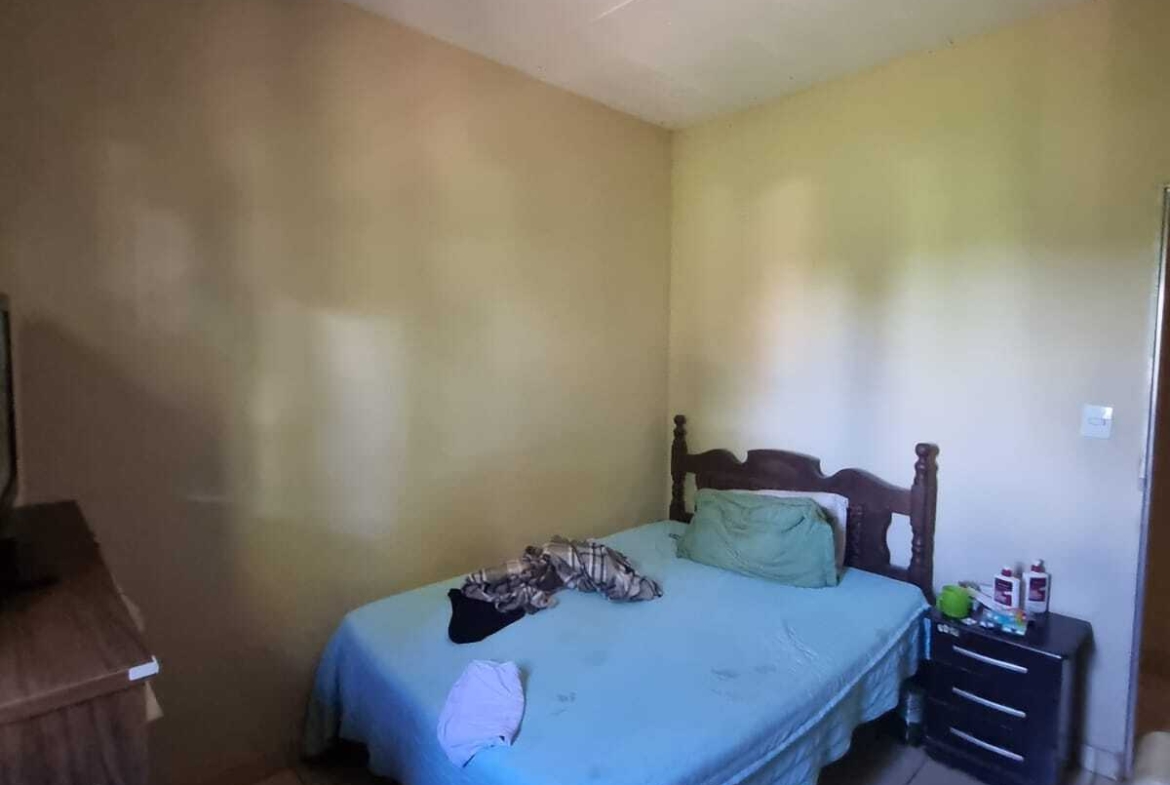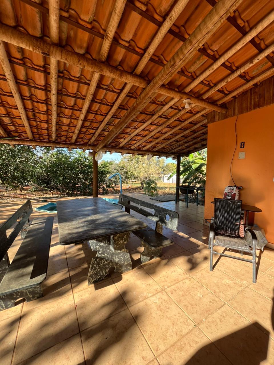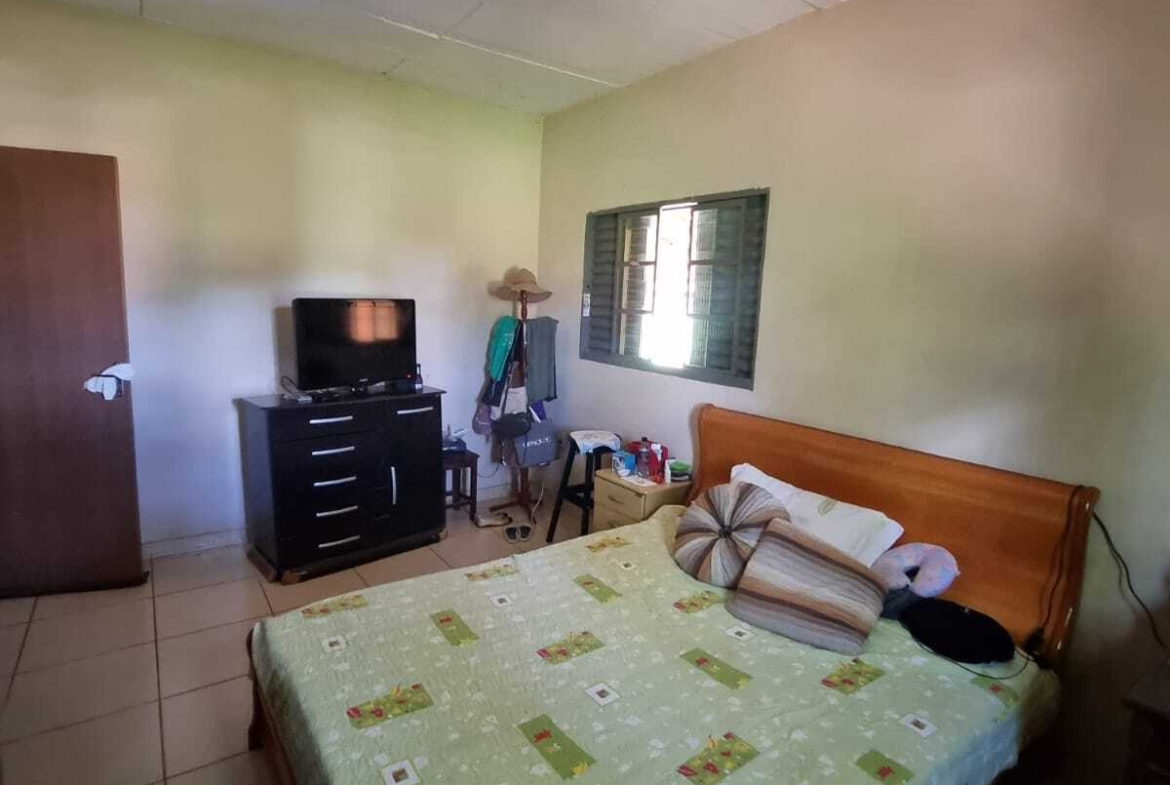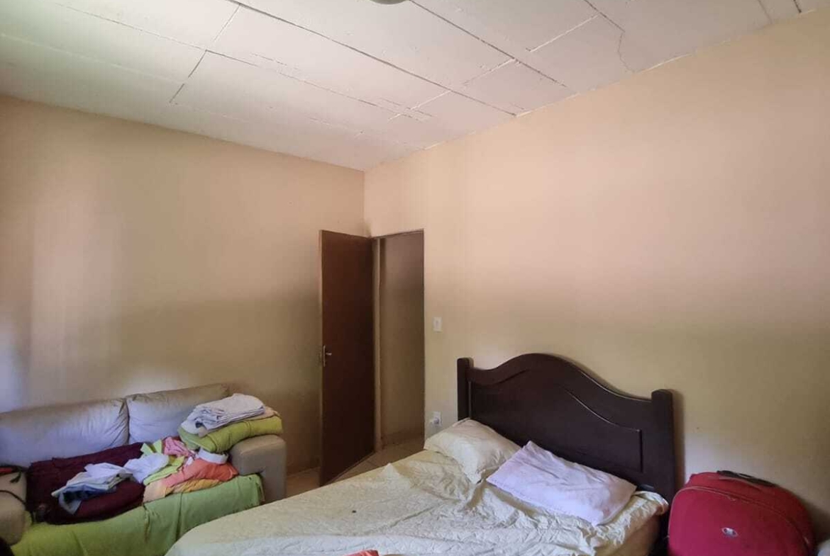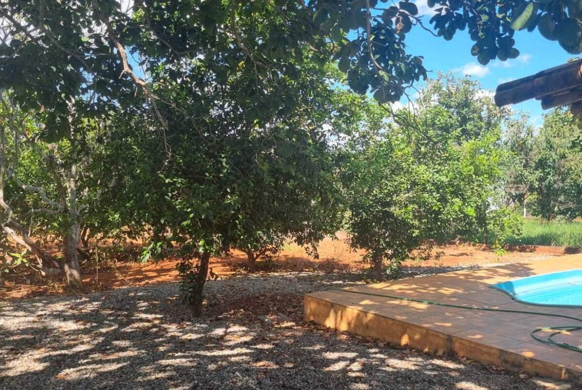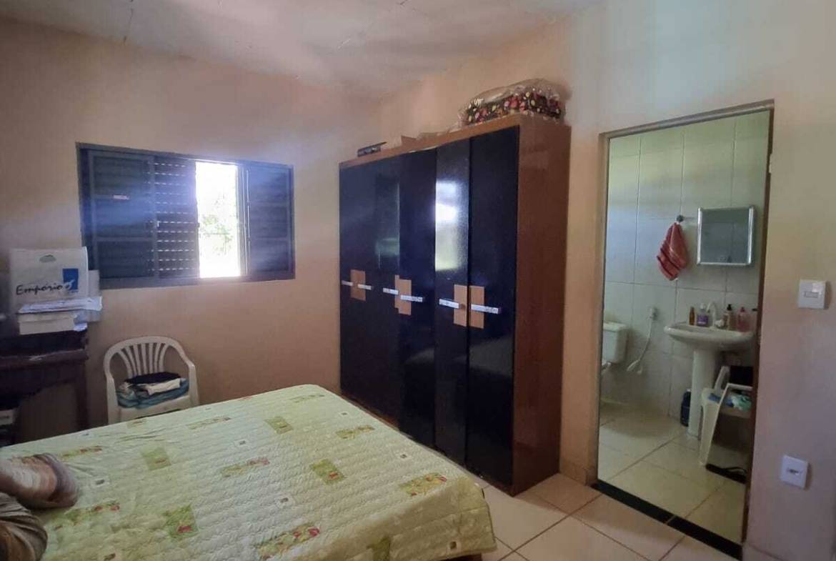 A casa possui 3 quartos, sendo 1 suíte, sala e cozinha conjugadas, banheiro social, área de serviço, varanda coberta e piscina.