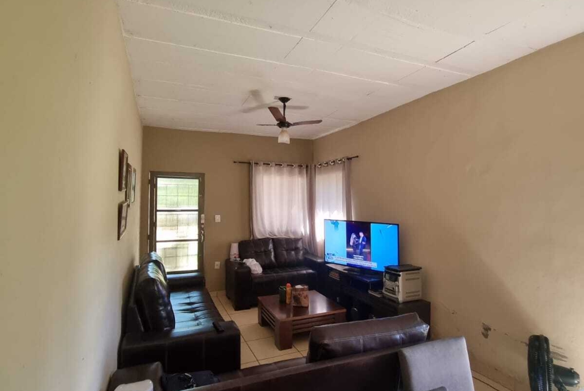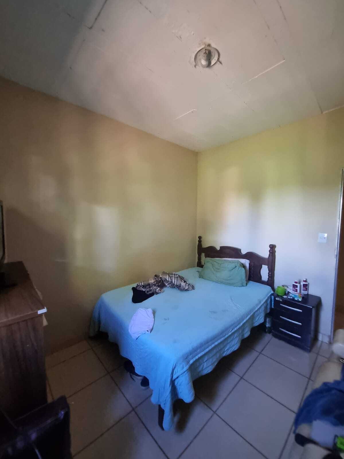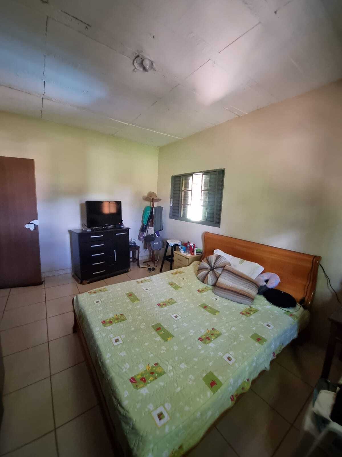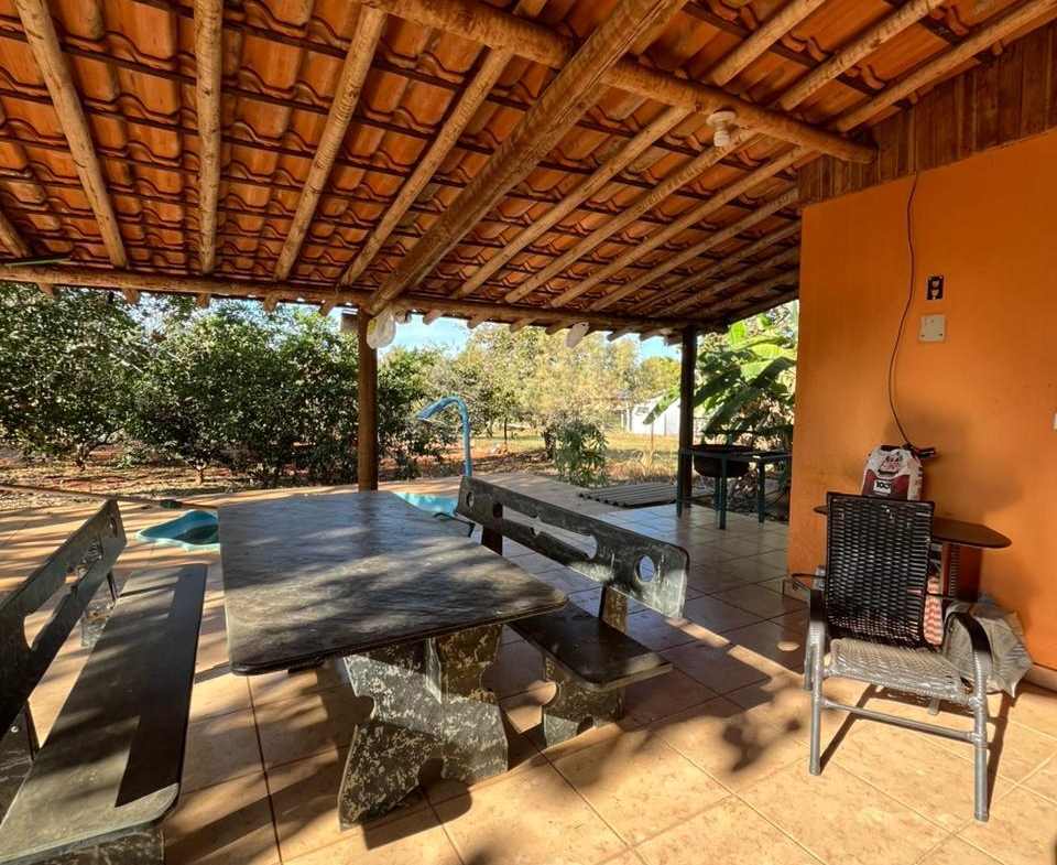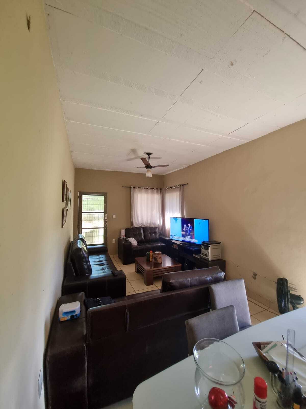 A casa possui 3 quartos, sendo 1 suíte, sala e cozinha conjugadas, banheiro social, área de serviço, varanda coberta e piscina.